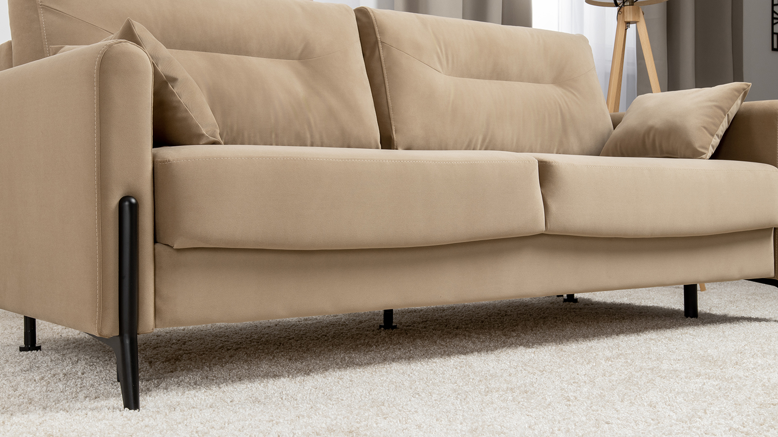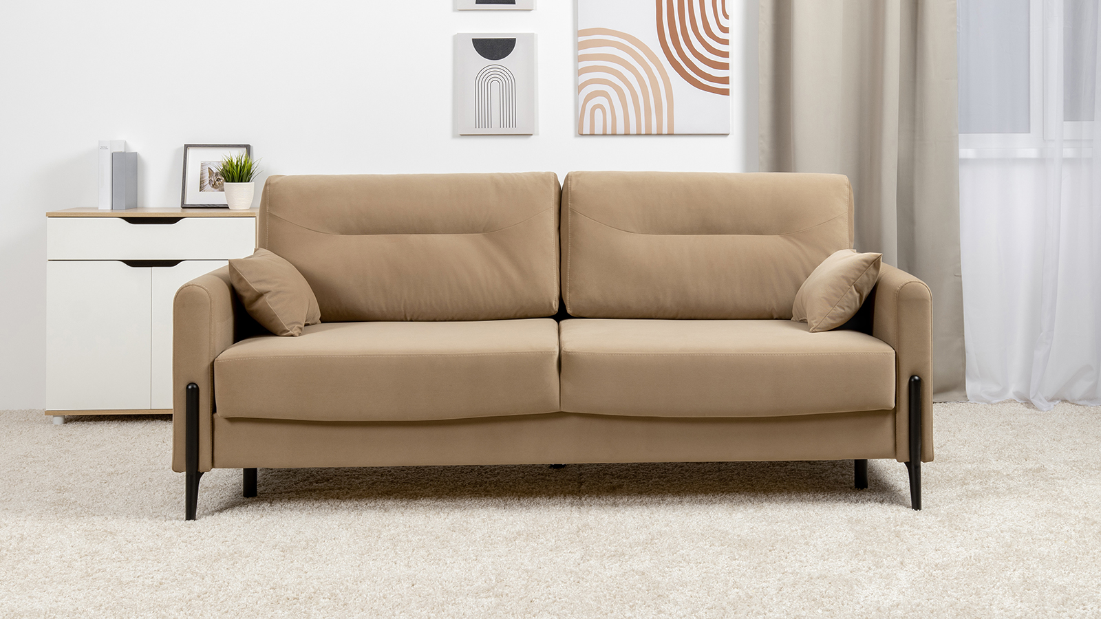 Барселона - современный диван, стиль которого удачно подчеркнут элегантными металлическими опорами.