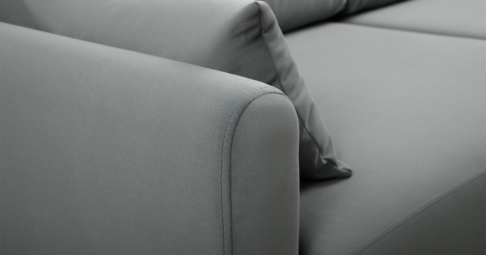 Металлические опоры плавно переходят в декоративный элемент подлокотника. Декоративная утяжка по приспинным подушкам