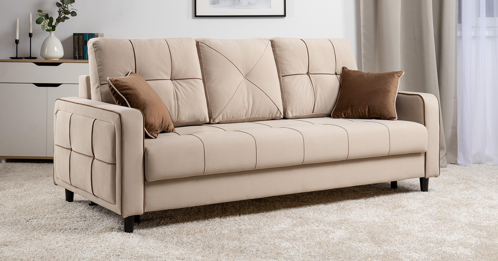 Диван-кровать прямой Черри ТД 284 велюр Irida 02 светло-бежевый, Эвита шоколад бежево-коричневый