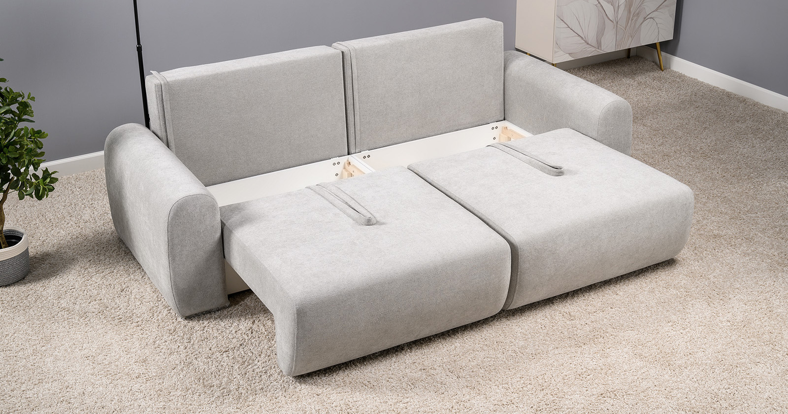 Диван-кровать прямой Тэдди 1506 композиция 1, букле Pique 011 серый, модульная система