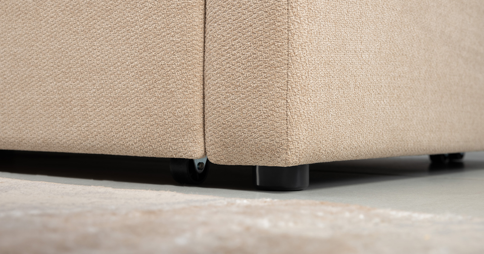 Коллекция выполнена в современном минималистичном стиле с мягкой обивкой из износостойкой ткани и декоративной стежкой, подчеркивающей геометрию форм. Механизм трансформации обеспечивает дополнительное спальное место, делая мебель не только эстетичной, но и максимально функциональной для небольших пространств.