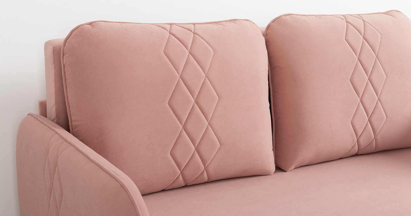 Стильный компактный диван для детской и гостиной. При своих скромных размерах он трансформируется в полноценное спальное место для детей и подростков. Лаконичный дизайн в виде декоративной стежки подчеркивает фактуру велюра, а небольшие размеры позволят разместить его в любом пространстве.