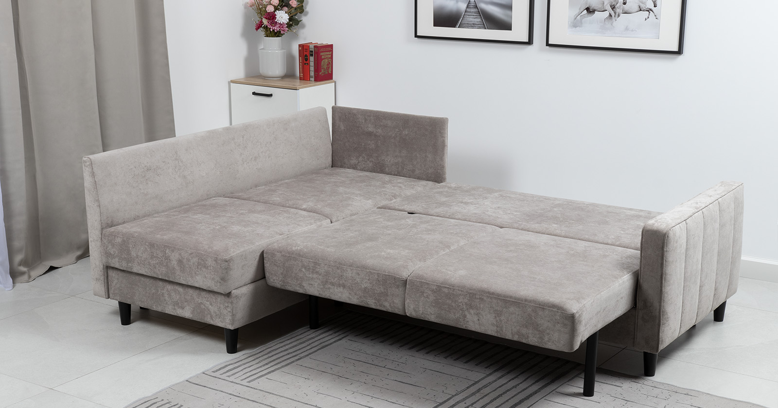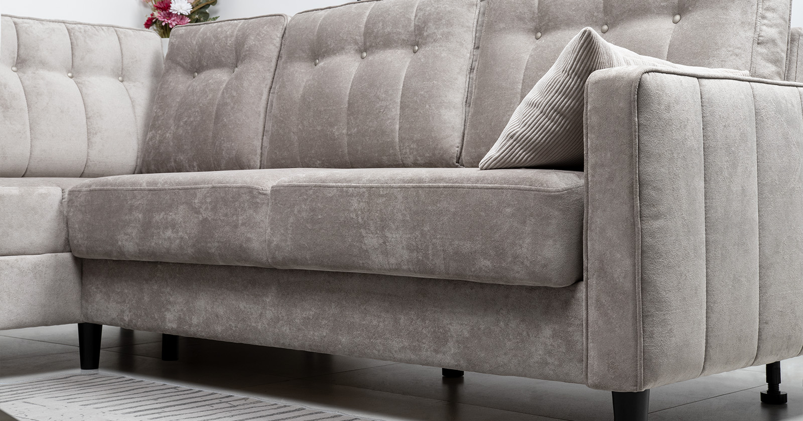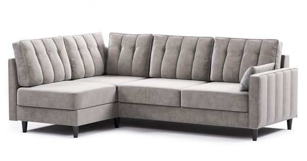 Диван-кровать угловой Арно ТД 563 велюр Лаки 02 серый жемчуг, Vertical 910 молочно-серый, сборка на любую сторону