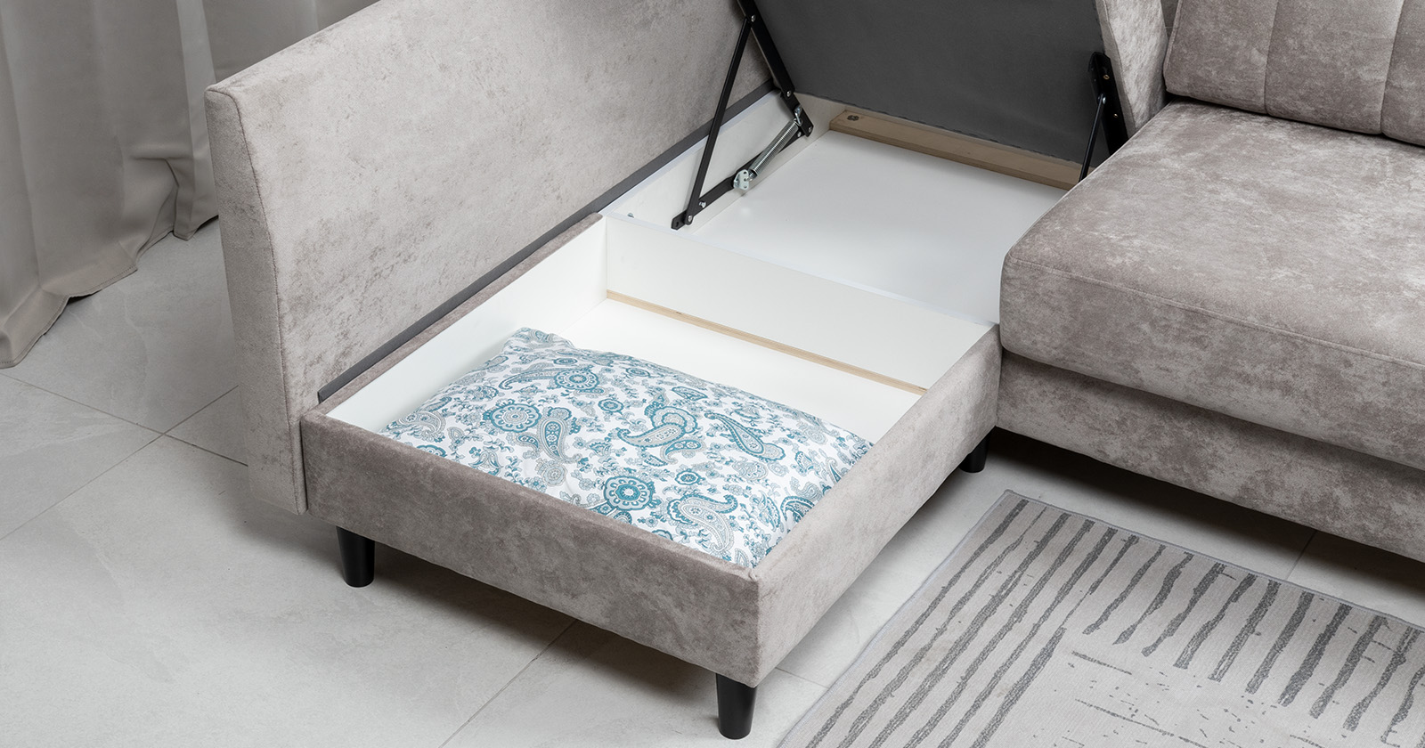 Современный функциональный угловой диван – отличное решение для вечернего отдыха в кругу семьи. Максимальная функциональность при минимальных габаритах: отдых сидя и релакс, широкое спальное место, два бельевых ящика. Может быть дополнен кресло Арно.
