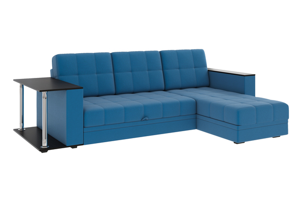 Диван-кровать угловой Атлант со столиком велюр синий со спальным местом (сборка на любую сторону)