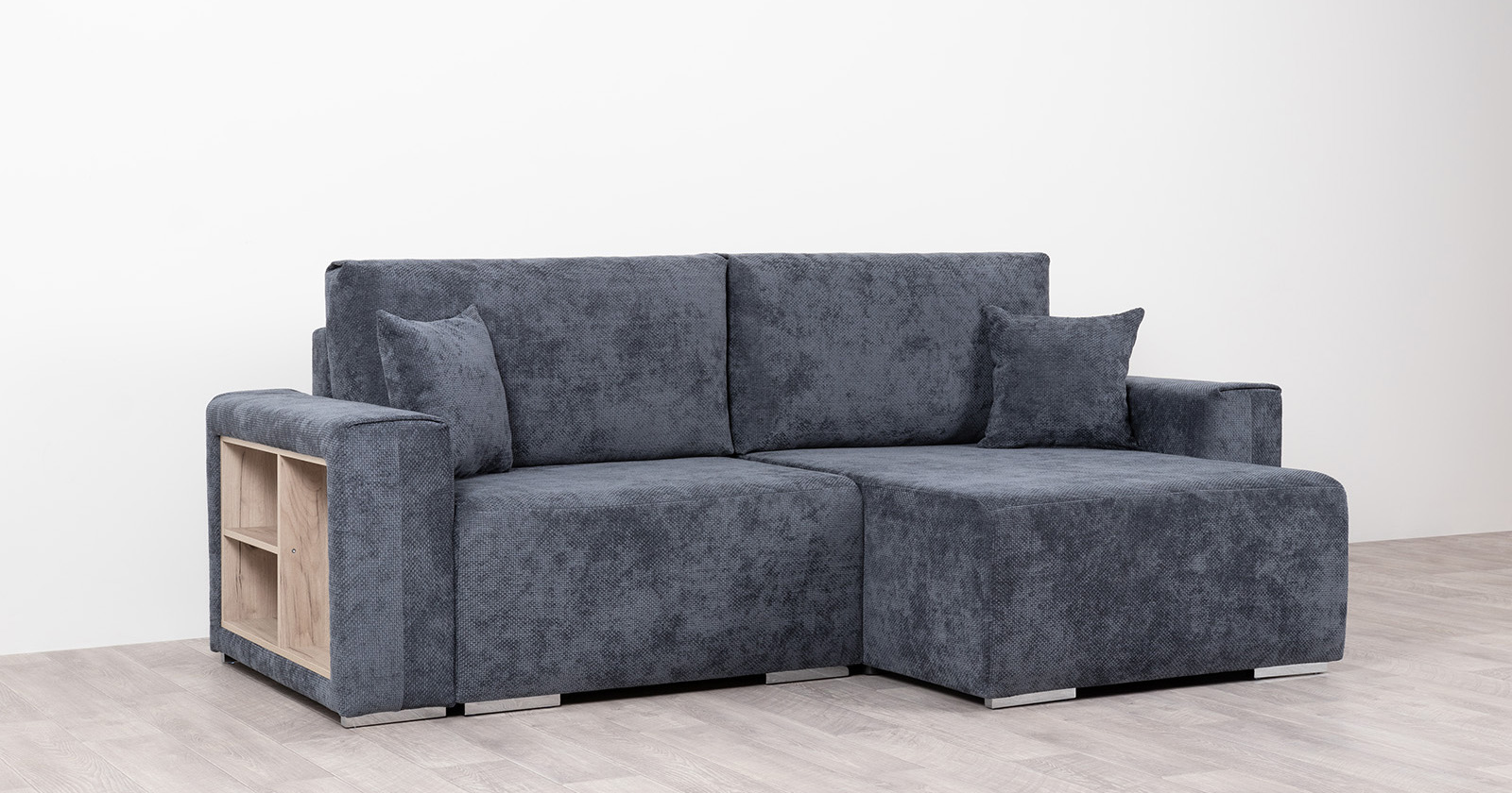 Диван-кровать угловой Оксфорд 713 композиция 1, шенилл MUZA 09 темно-синий, модульная система, сборка на любую сторону