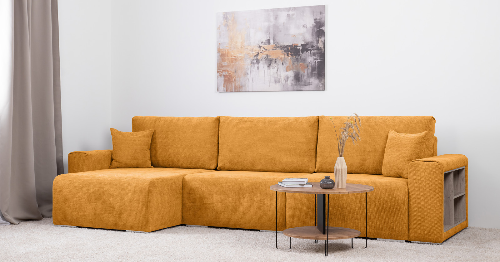 Диван-кровать угловой Оксфорд 714 композиция 2, STORM 8 горчичный, модульная система, сборка на любую сторону