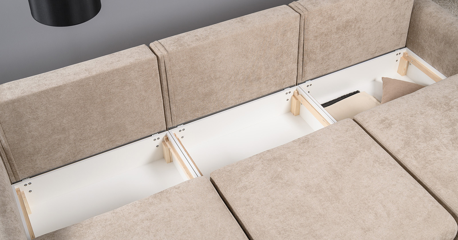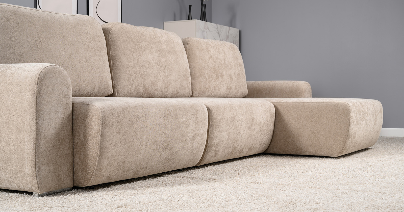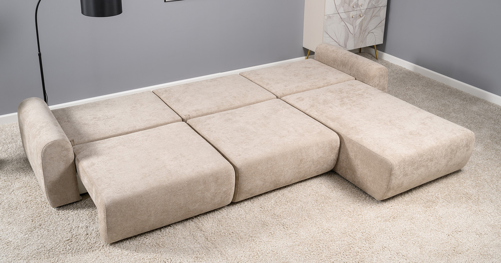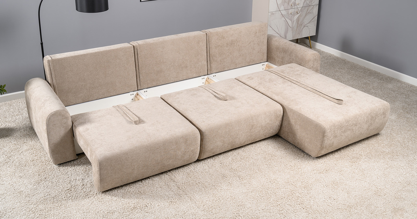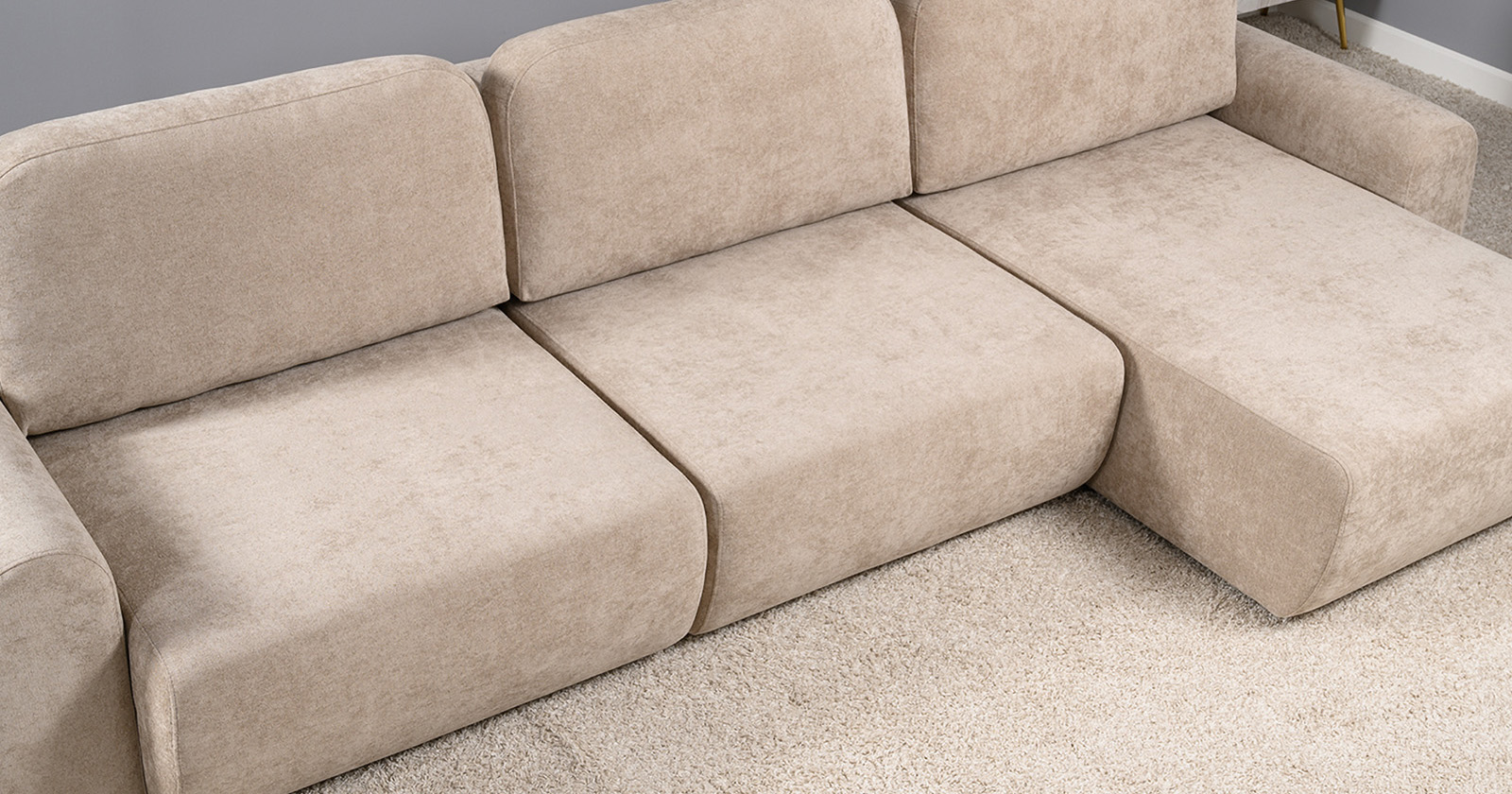 Диван-кровать угловой Тэдди 1502 композиция 3, букле Pique 006 бежевый, модульная система, сборка на любую сторону