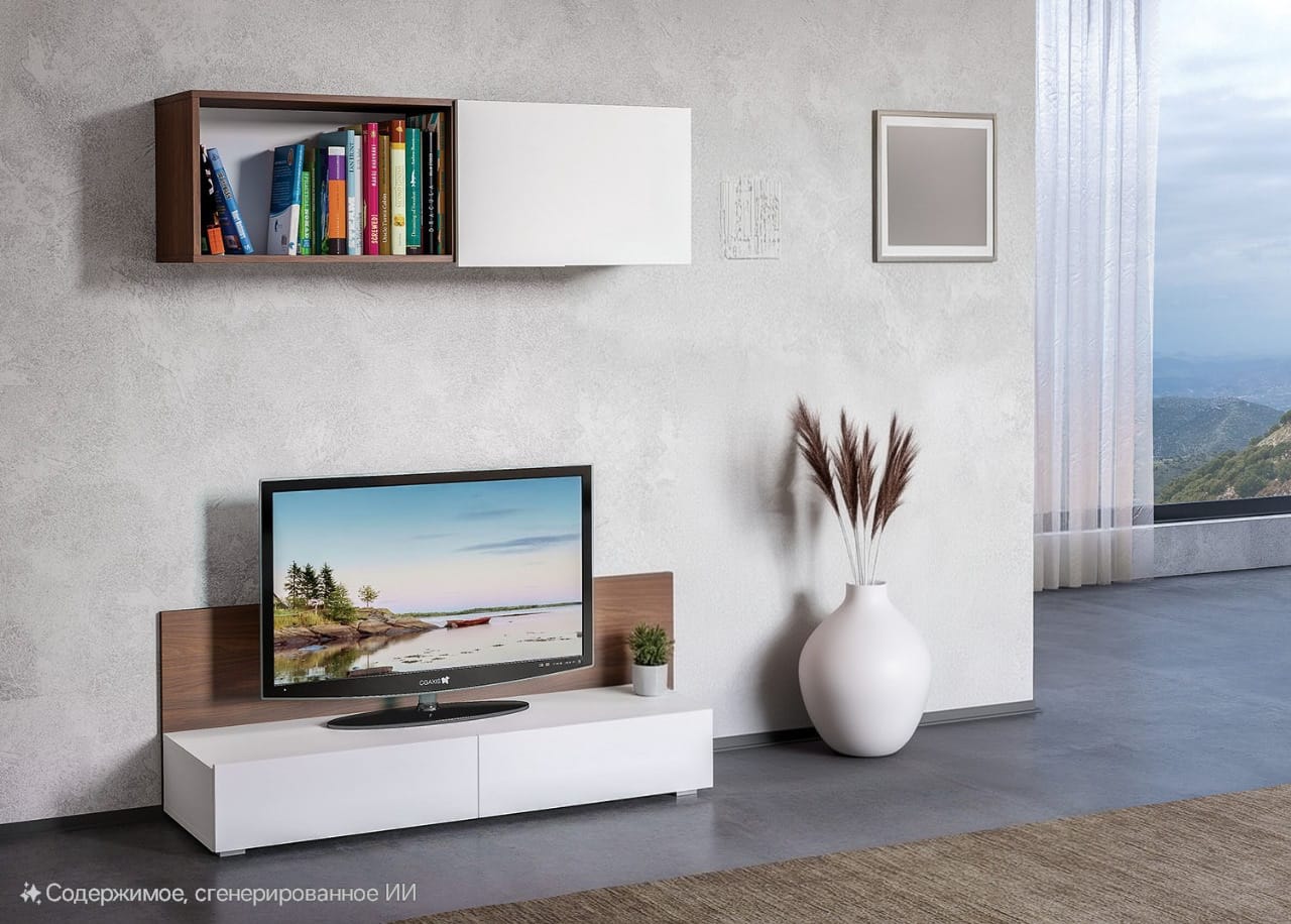 Стильное и функциональное модульное решение для гостиной в современном минималистичном стиле.