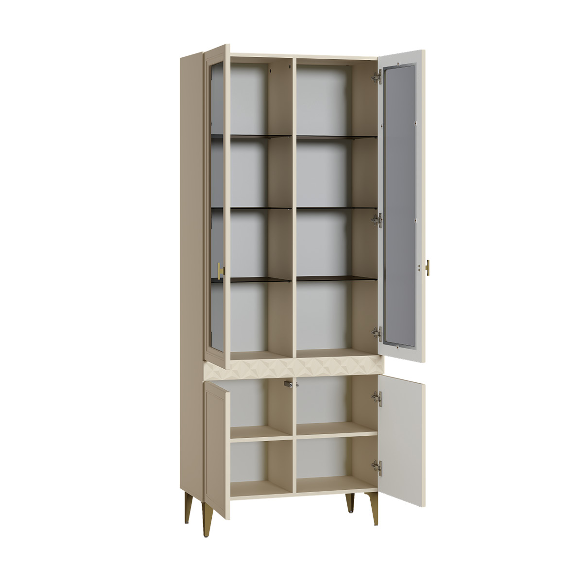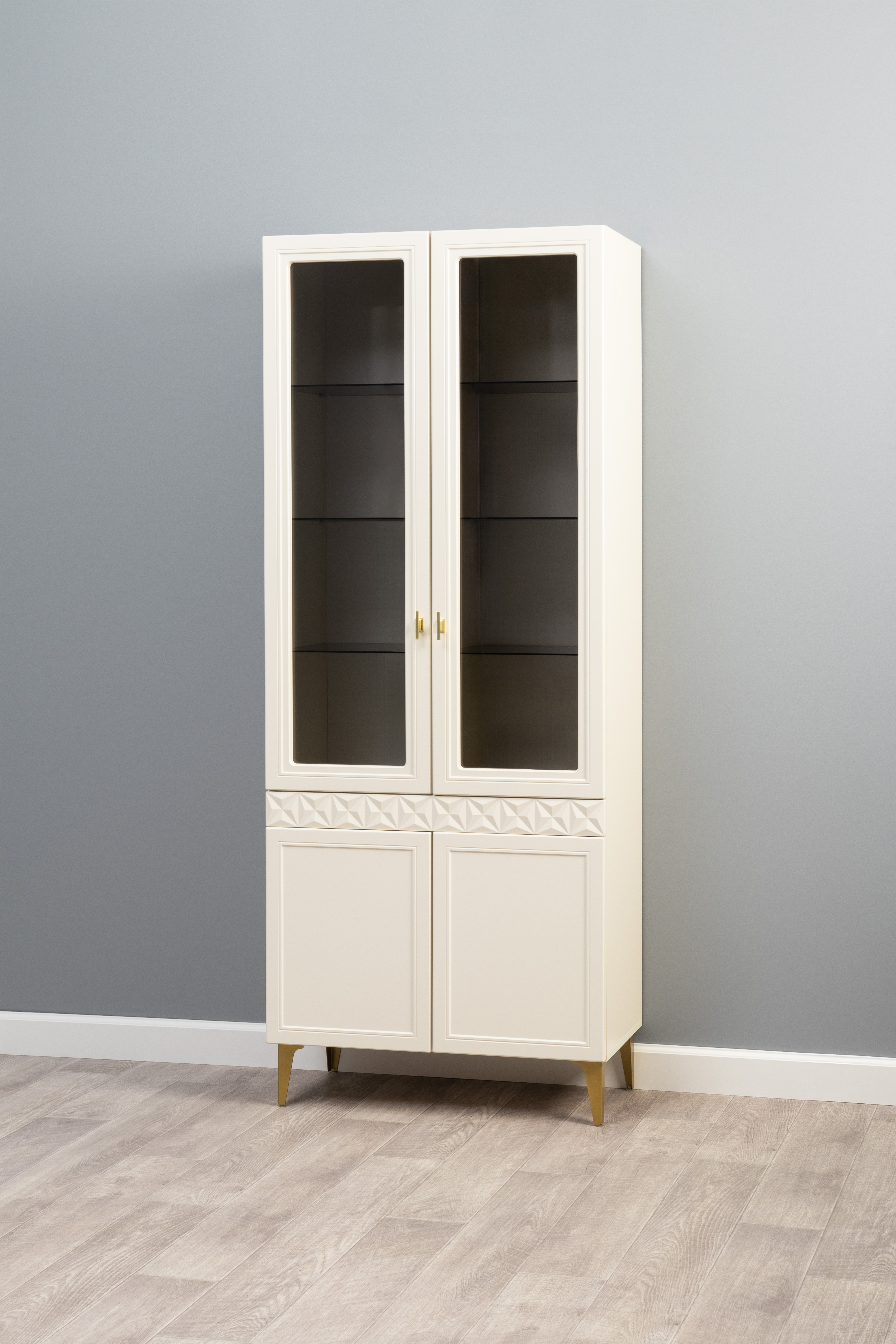 В коллекции представлены три типа витрин с тонированным закалённым стеклом, которые придают пространству лёгкость и свет. «Марион» — идеальное сочетание традиций и актуального дизайна в каждой детали.