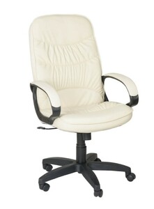 Кресло на колесах Канц ультра кожзам бежевый, крестовина пластик, подлокотники с мягкими накладками, механизм качания