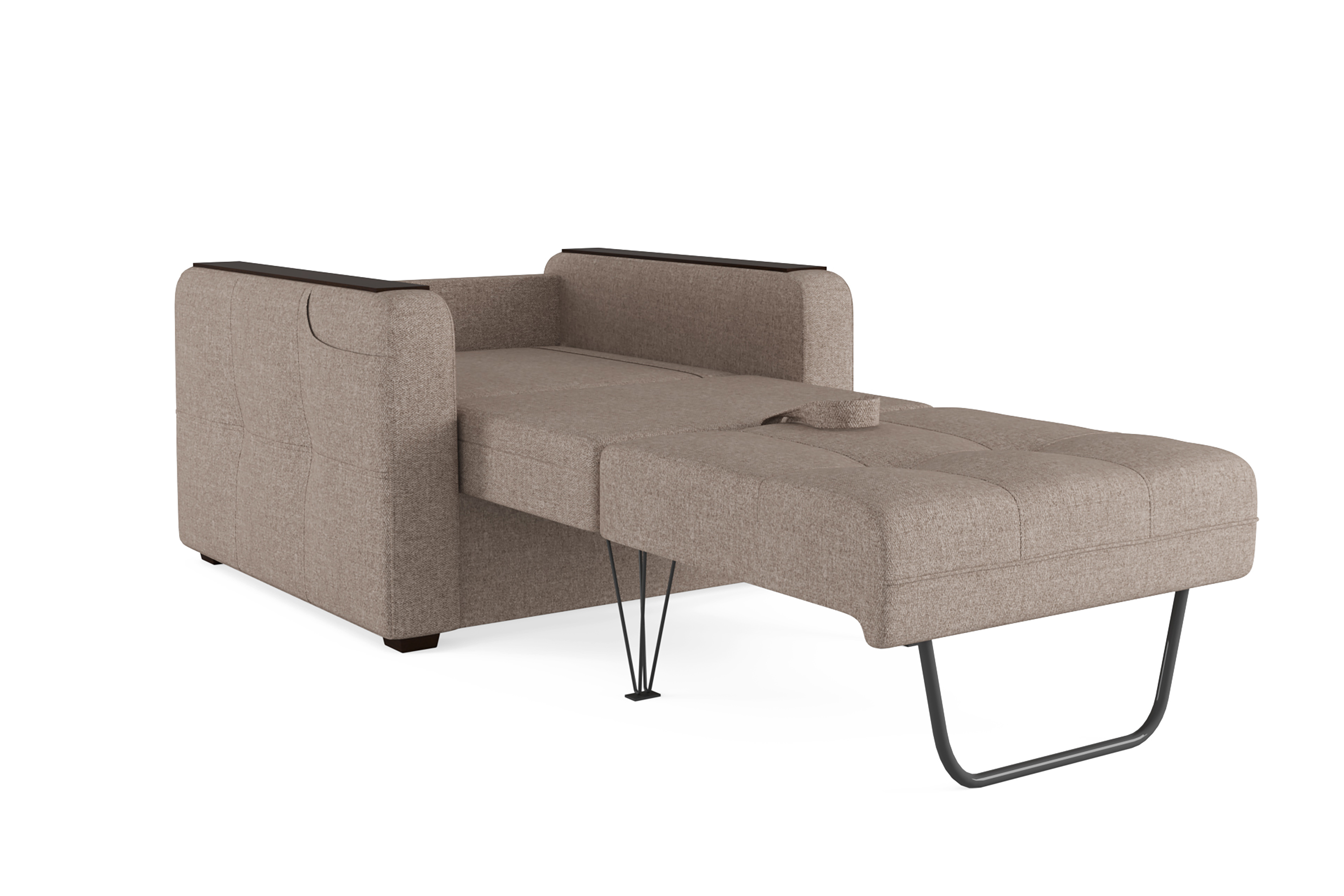 Кресло – кровать  коллекции «SMART» -  стильное и современное, с лаконичными прямыми формами, легко превращается в полноценное спальное место и так же быстро собирается обратно.  Удобный механизм раскладывания "Каскад" не требует отодвигания от стены и работает из стационарного положения. Помимо односпального места и бельевого ящика модель оснащена накладками на подлокотниках, на которые удобно поставить кружку. На подлокотнике есть карман, чтобы гаджеты или книга были всегда под рукой. Модель не перегружена декором, поэтому подойдёт к большинству современных интерьеров. Можно так же заказать кресло без механизма трансформации с бельевым ящиком.