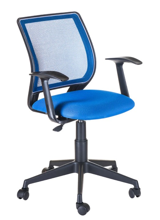 Кресло на колесах Эксперт Т эрго черное сидение TW,спинка синий, подлокотник пластик Т образный, крестовина пластик, без качания