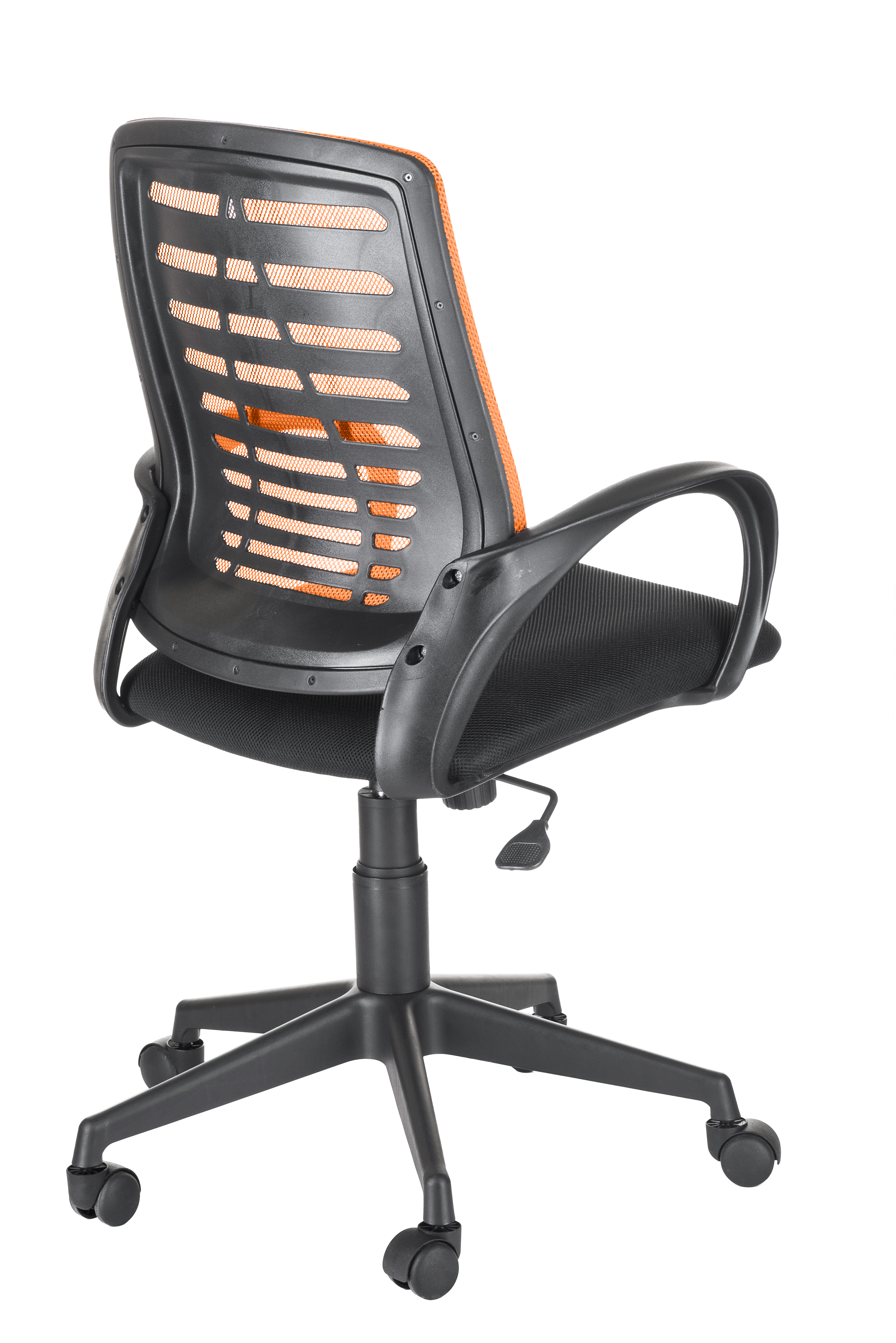 Кресло на колесах Ирис люкс обивка ткань-сетка TW сидушка черный, спинка оранж, подлокотники пластик, крестовина пластик, механизм качания
