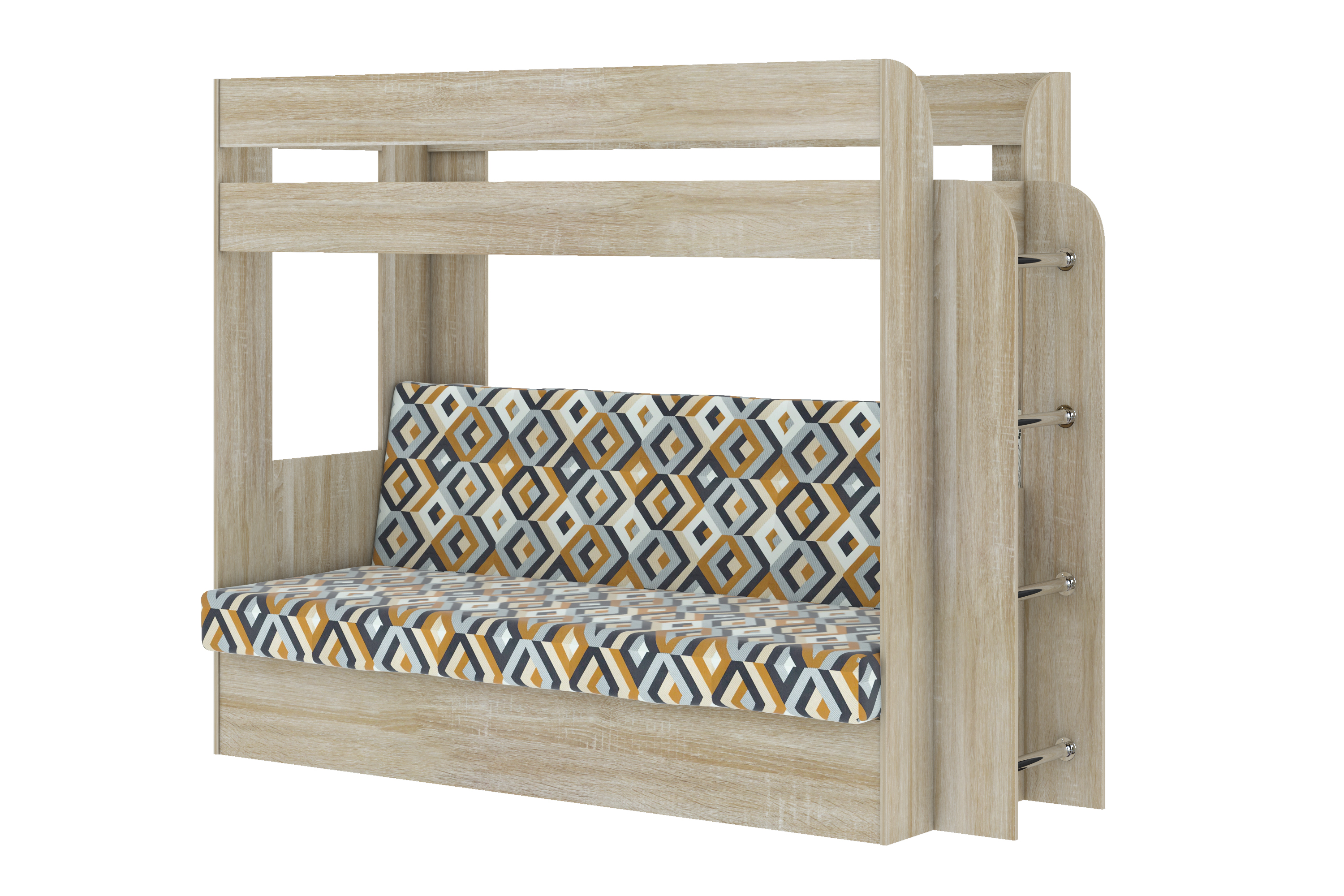 Кровать детская двухъярусная Карамель 75 Дуб Сонома, диван - велюр ESCADA OCHRA коричневые ромбы (сборка на любую сторону) спальное место верх 80х190, низ 120х185