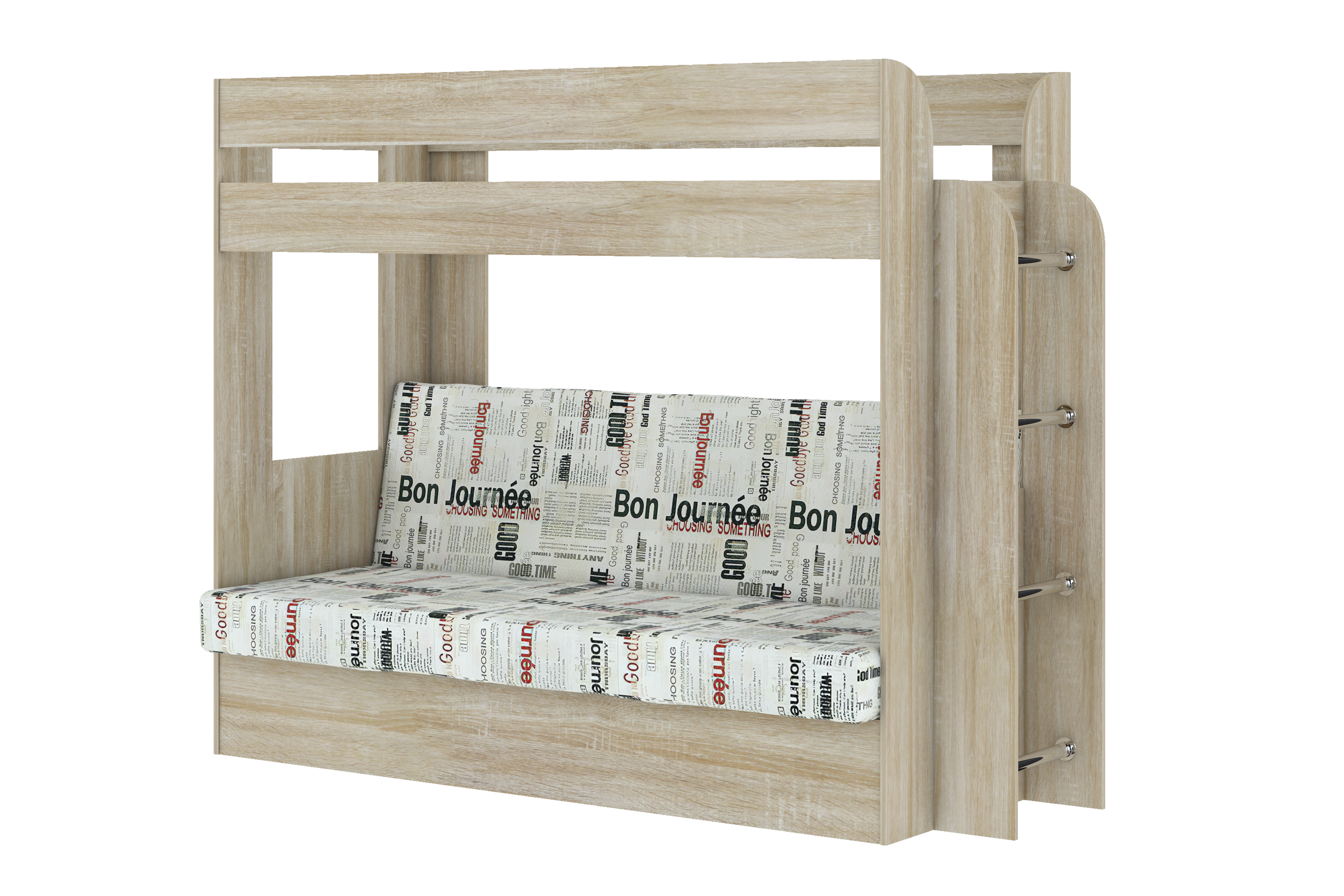 Кровать детская двухъярусная Карамель 75 Дуб Сонома, диван - велюр Газета (сборка на любую сторону) спальное место верх 80х190, низ 120х185