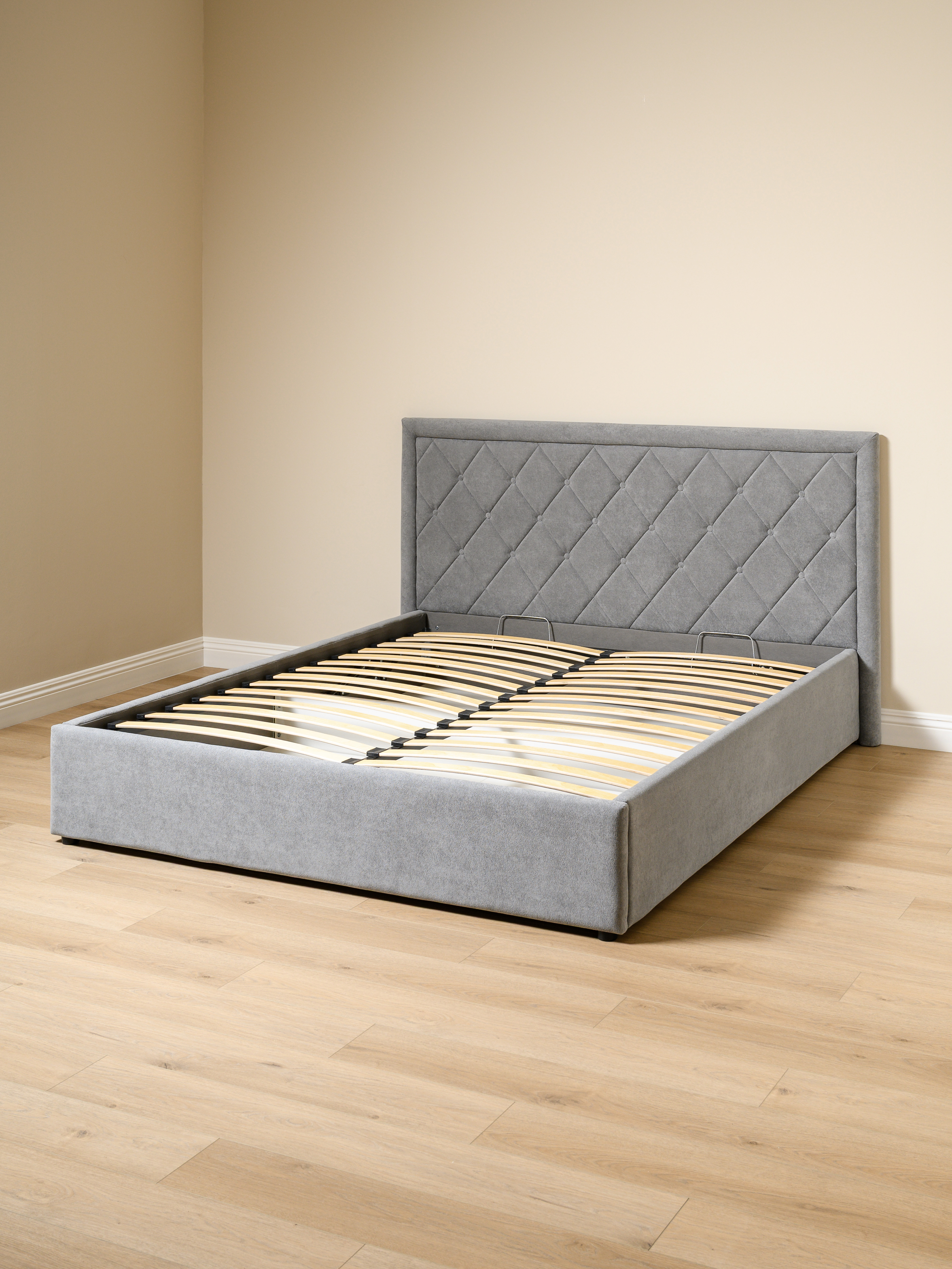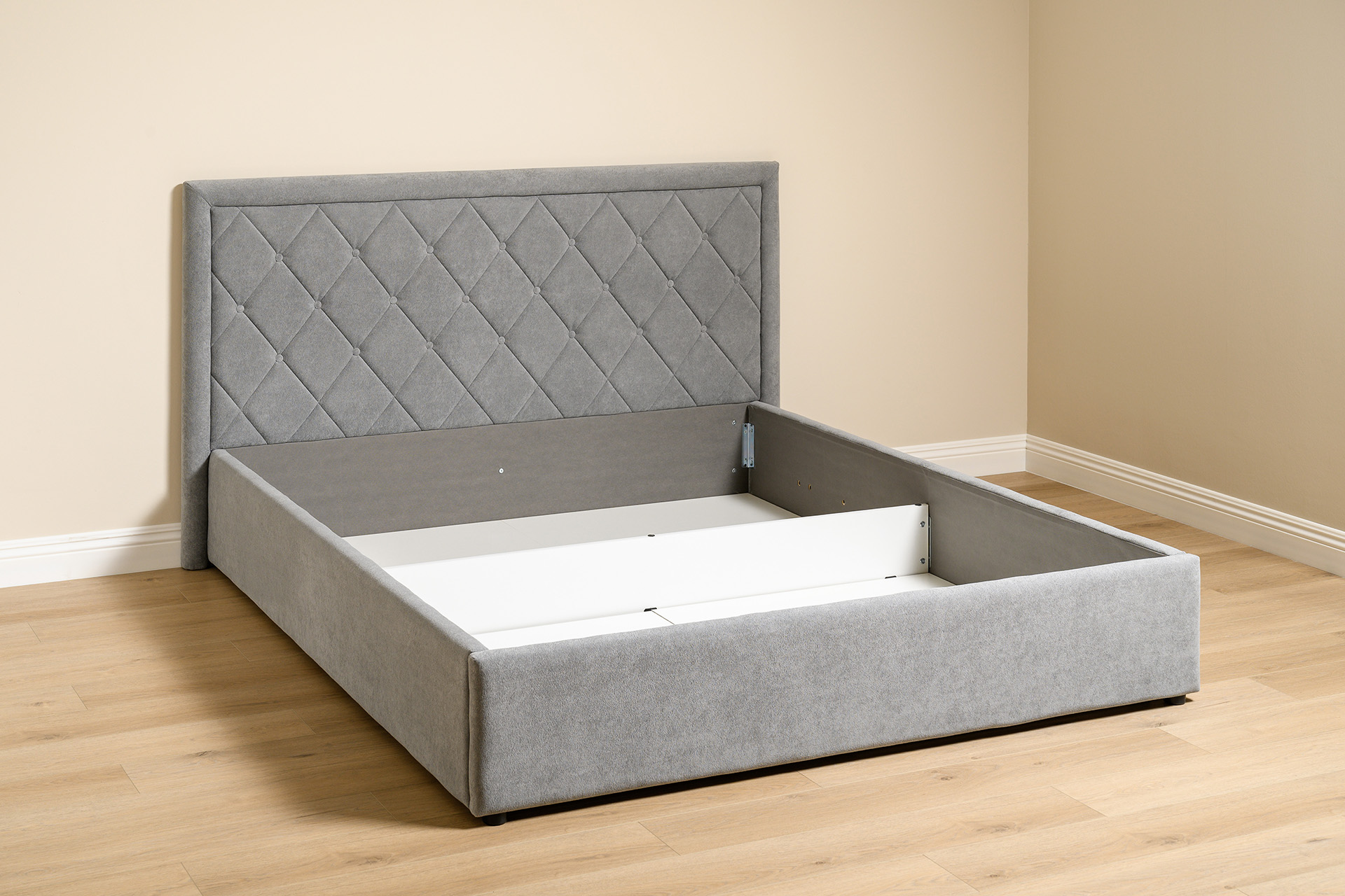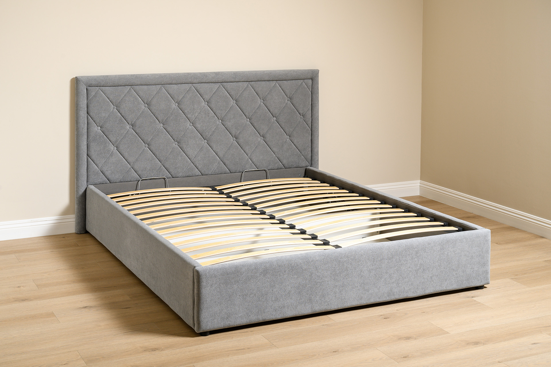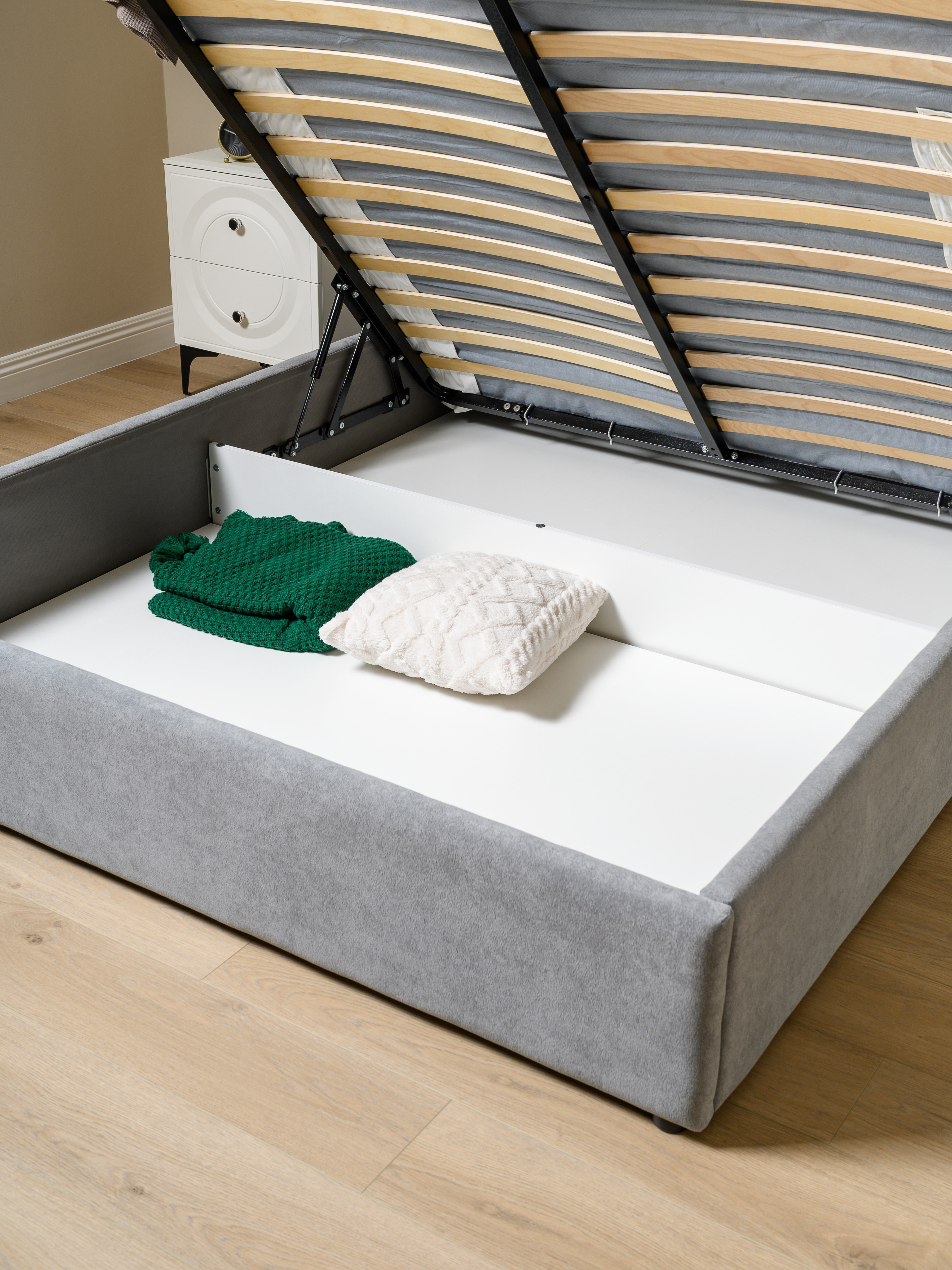 Кровать Марион 160 велюр OCEAN 023 серый с ортопедическим основанием и подъемным механизмом (спальное место 160 х 200)