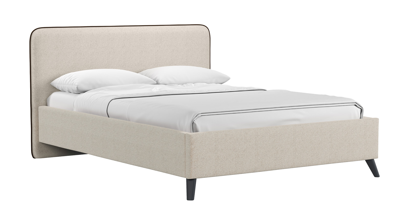 Cкругленный торец изголовья оформлен контрастным кантом.