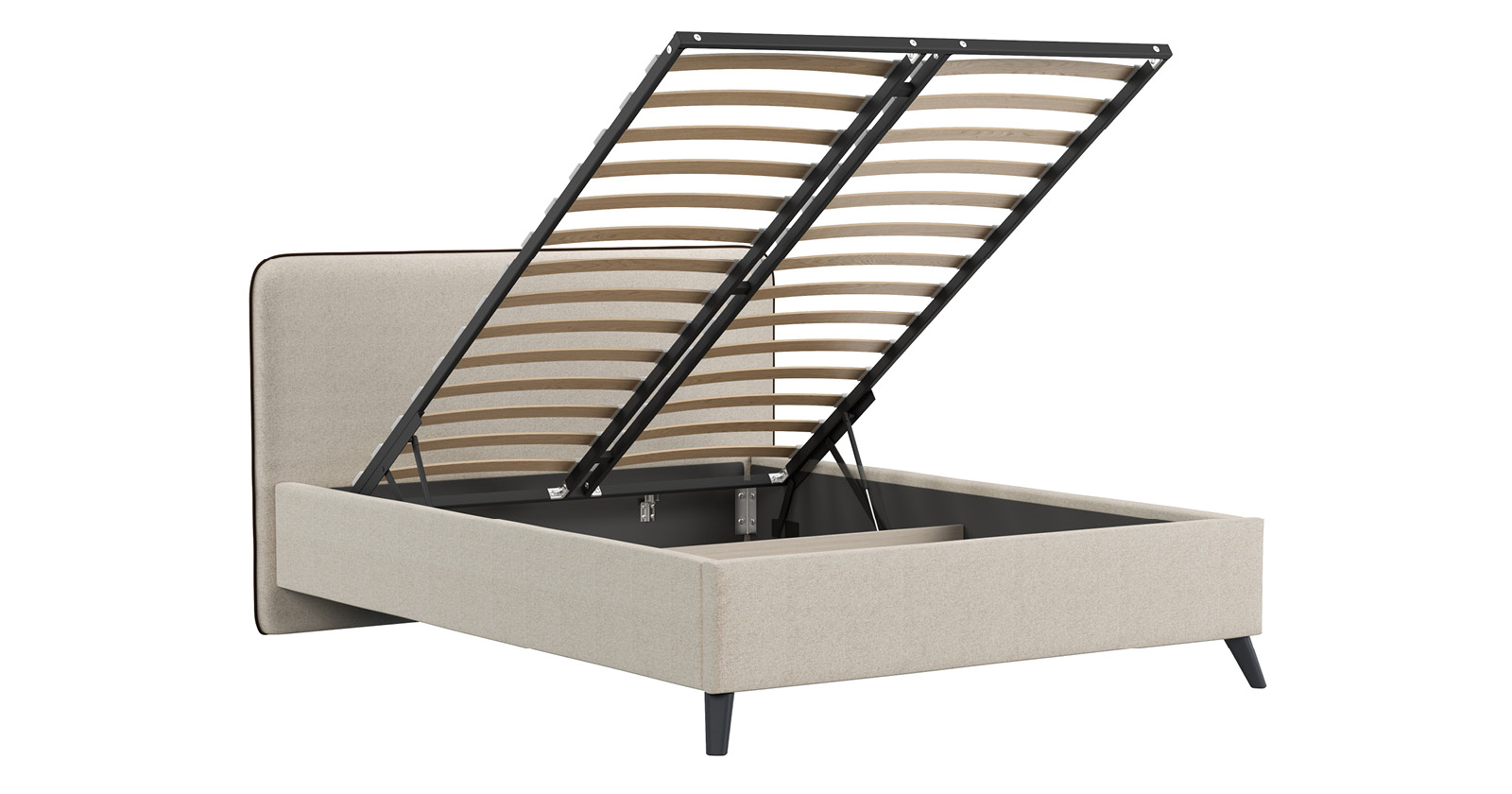 Кровать Миа 160 рогожка светло-бежевый, кант желтовато-коричневый с ортопедическим основанием и подъемным механизмом