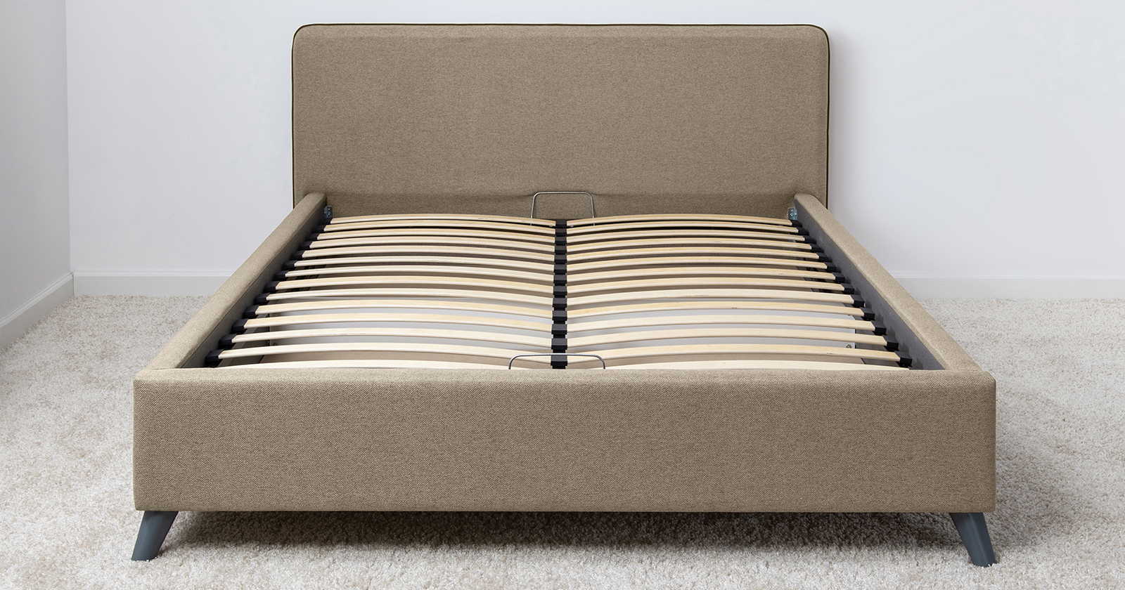 Основание кровати укомплектовано матрасодержателями. Жесткое кроватное дно из МДФ 6 мм. Задняя стенка изголовья выполнена в тех. ткани (спанбонд).