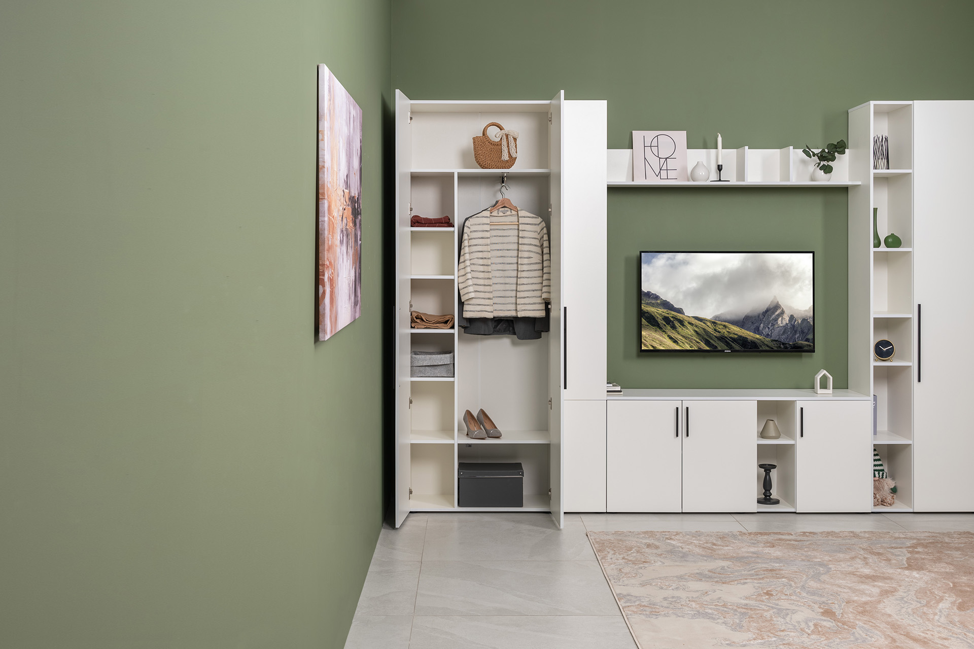 Гостиная Эйр доступна в двух цветовых решениях: белый и графит.