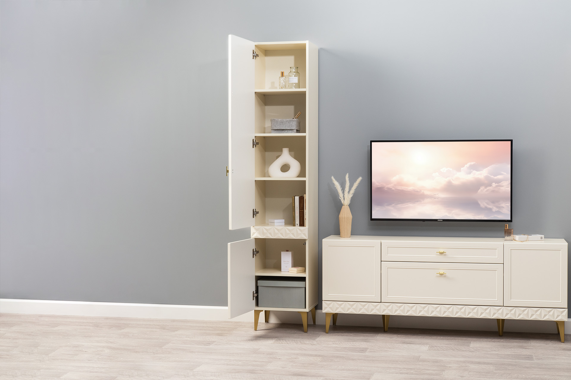 Шкаф-пенал Марион 16.333.01 слоновая кость С341 PE, слоновая кость 6898 ПВХ (собирается на любую сторону)