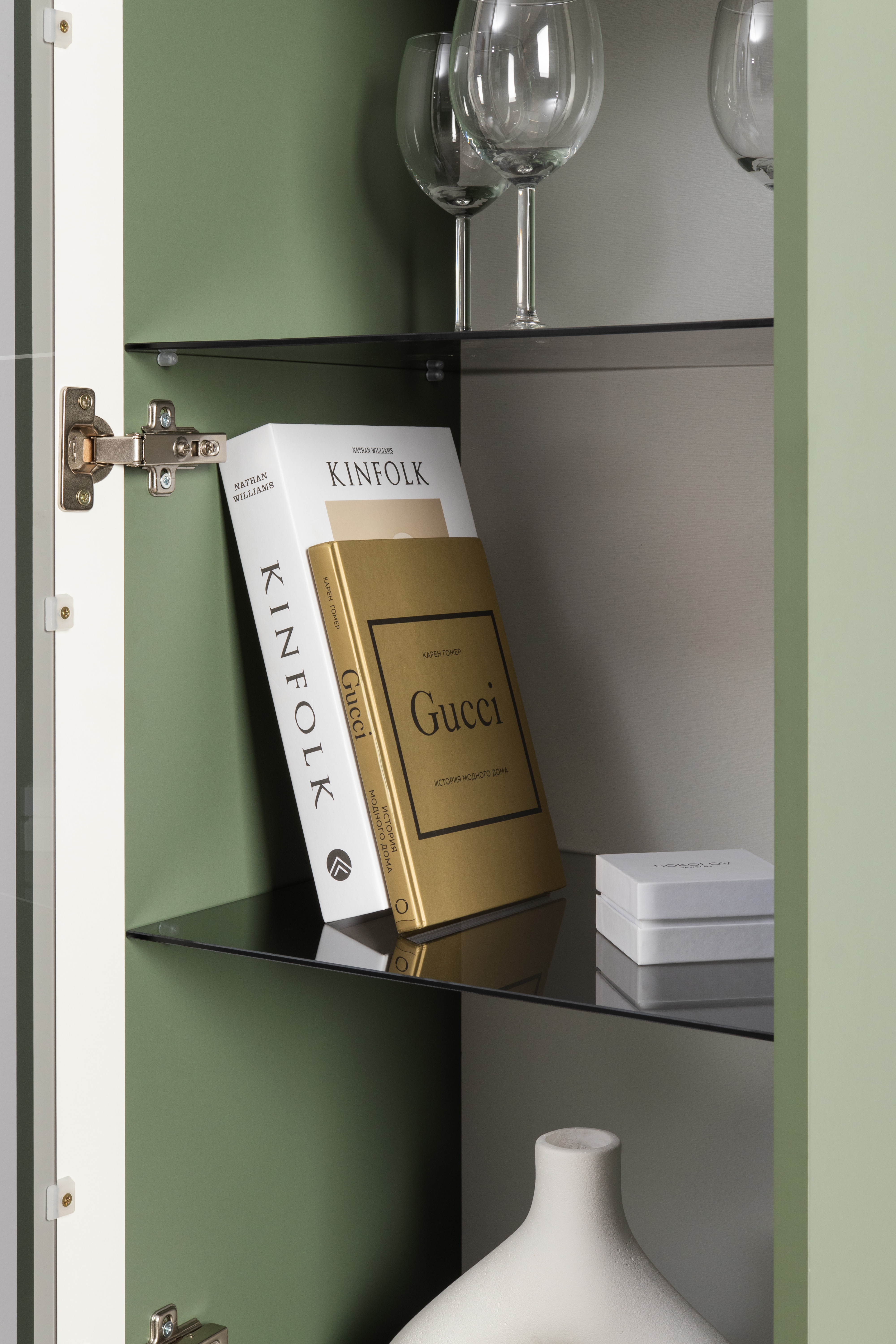В коллекции представлены три типа витрин с тонированным закалённым стеклом, которые придают пространству лёгкость и свет. «Марион» — идеальное сочетание традиций и актуального дизайна в каждой детали.