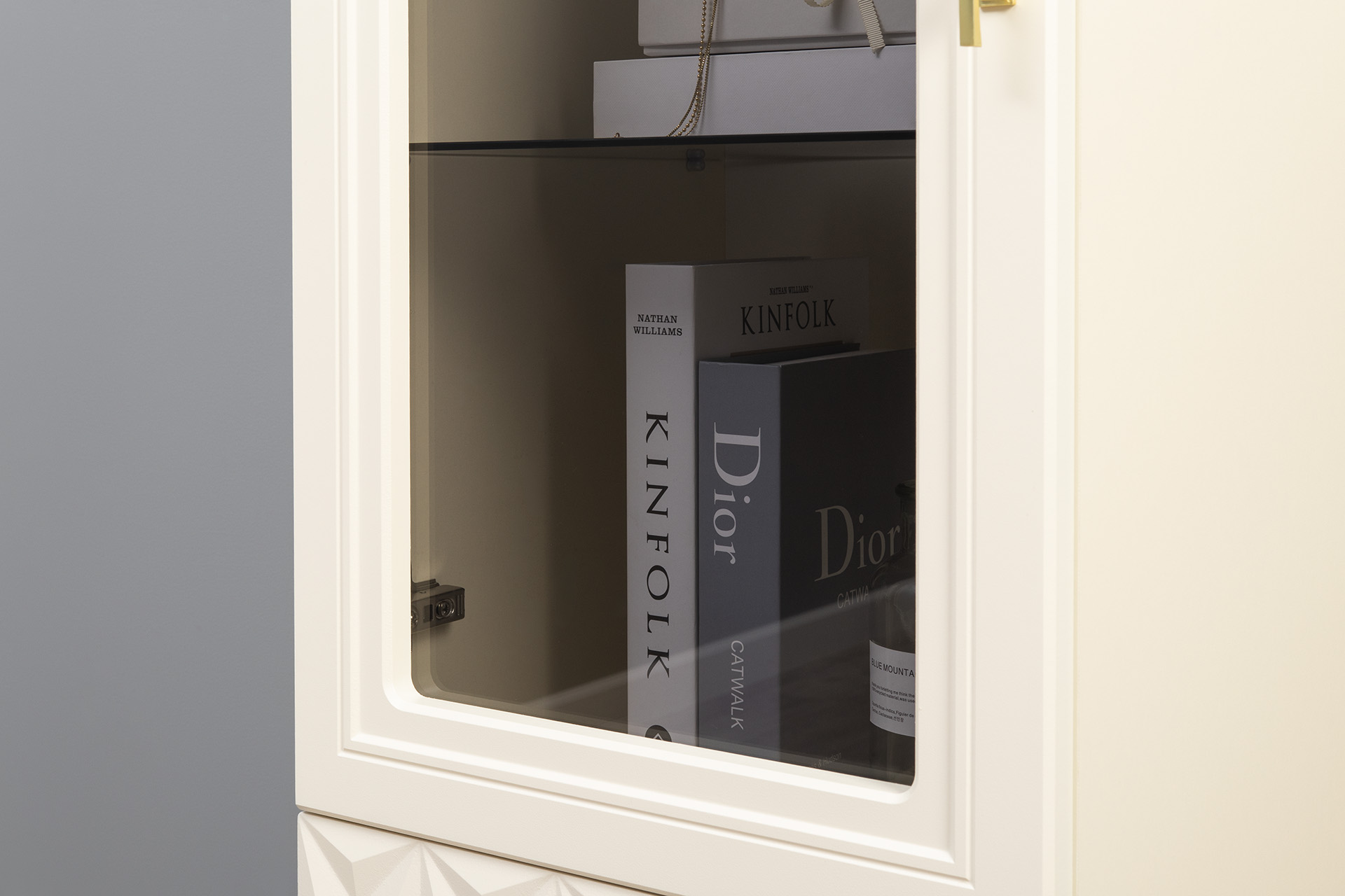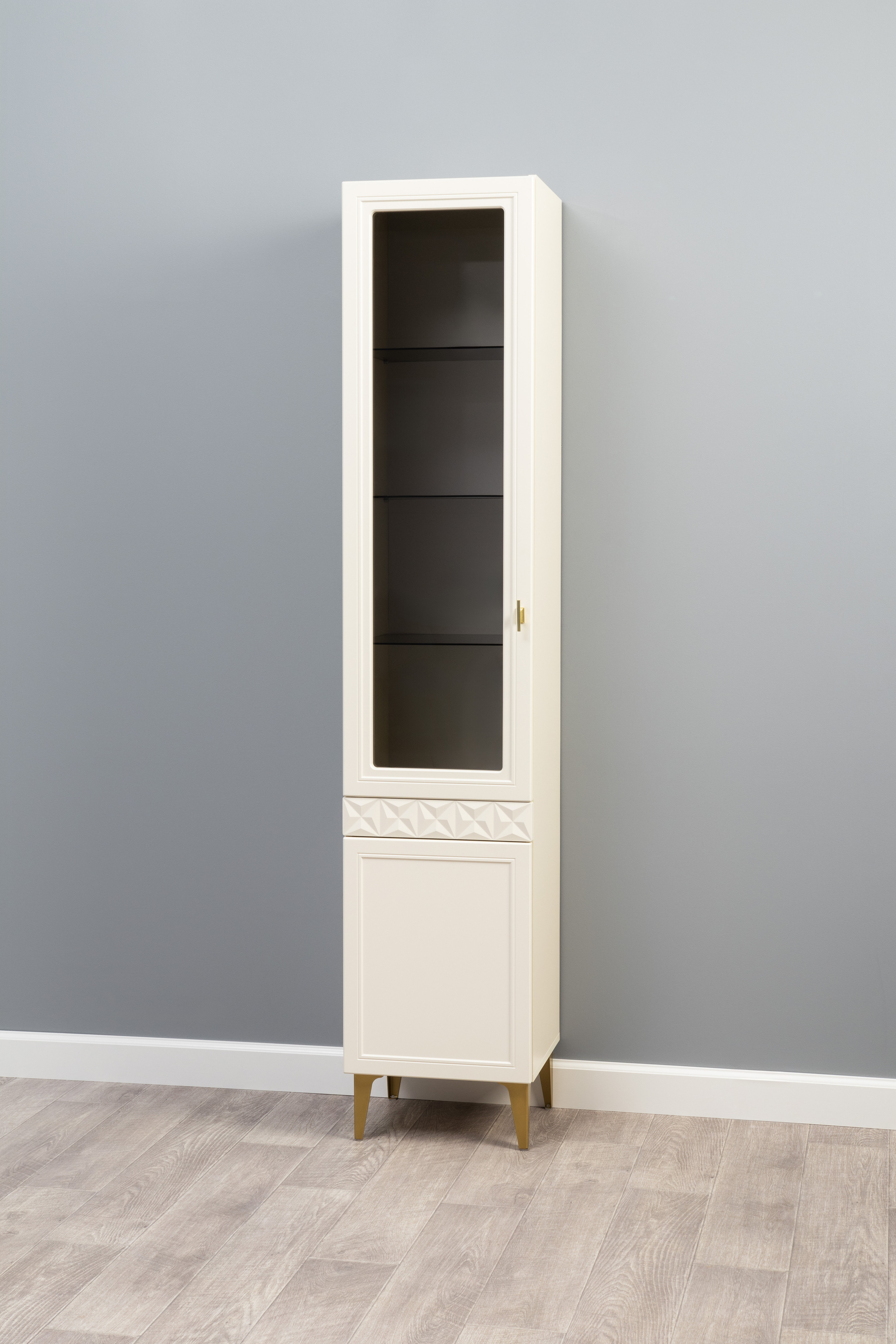 Шкаф-витрина Марион 16.397.01 слоновая кость С341 PE, слоновая кость 6898 ПВХ (собирается на любую сторону)