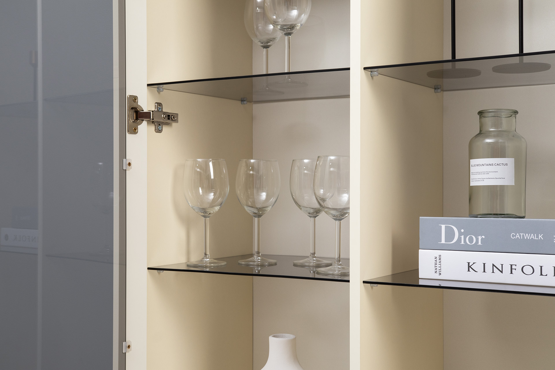 В коллекции представлены три типа витрин с тонированным закалённым стеклом, которые придают пространству лёгкость и свет. «Марион» — идеальное сочетание традиций и актуального дизайна в каждой детали.