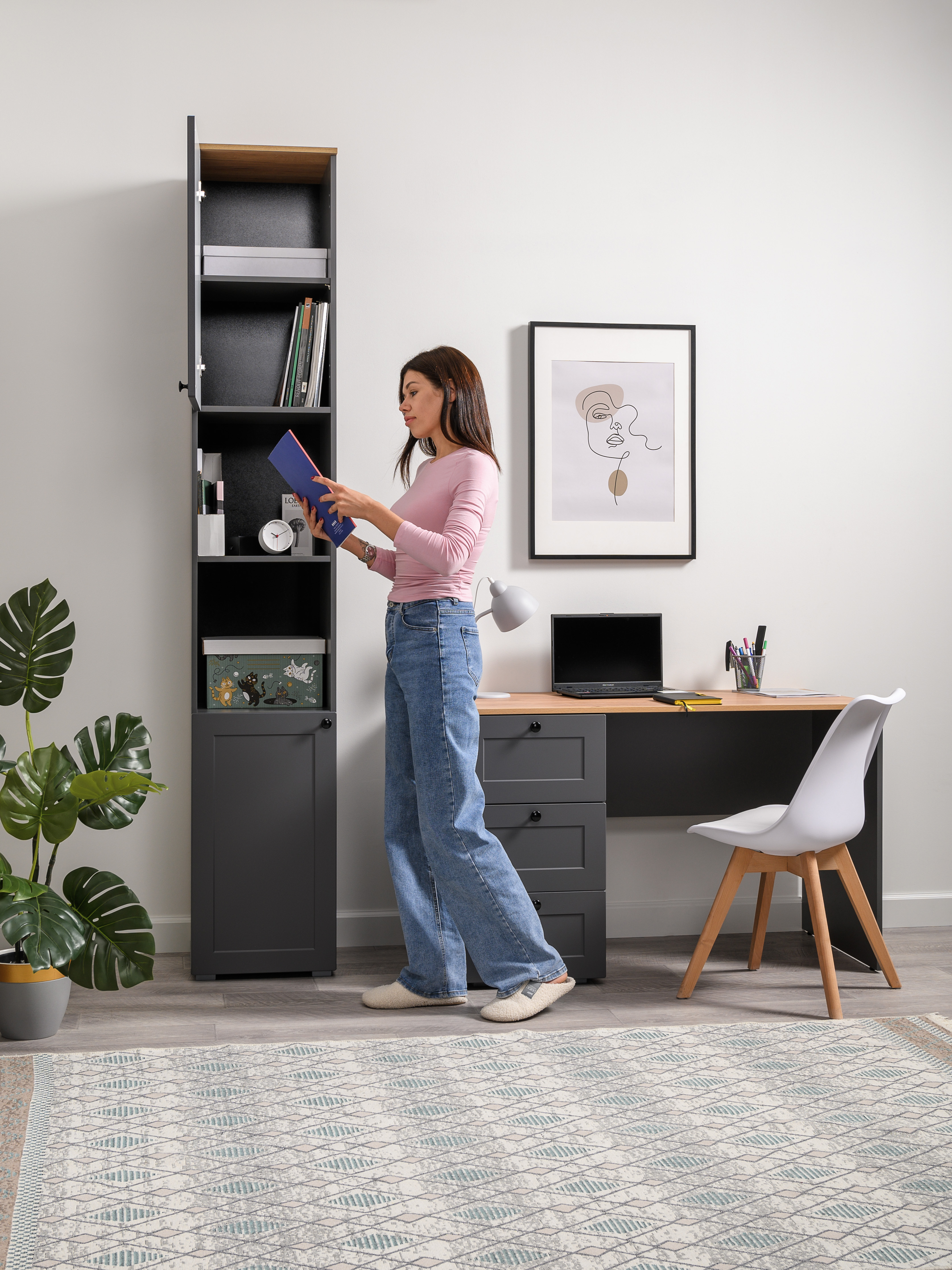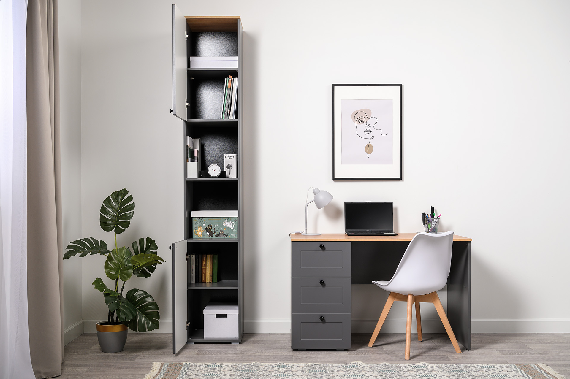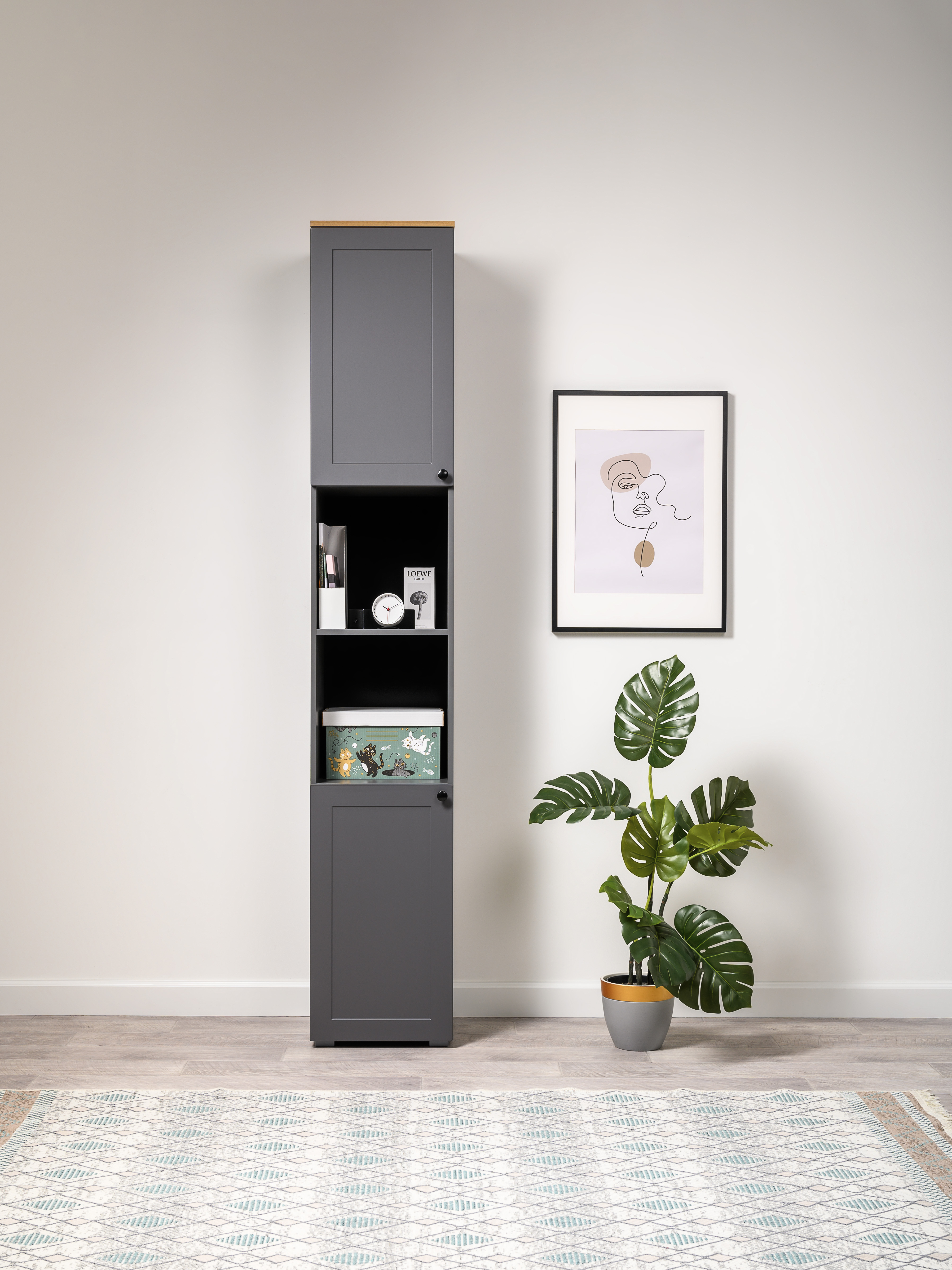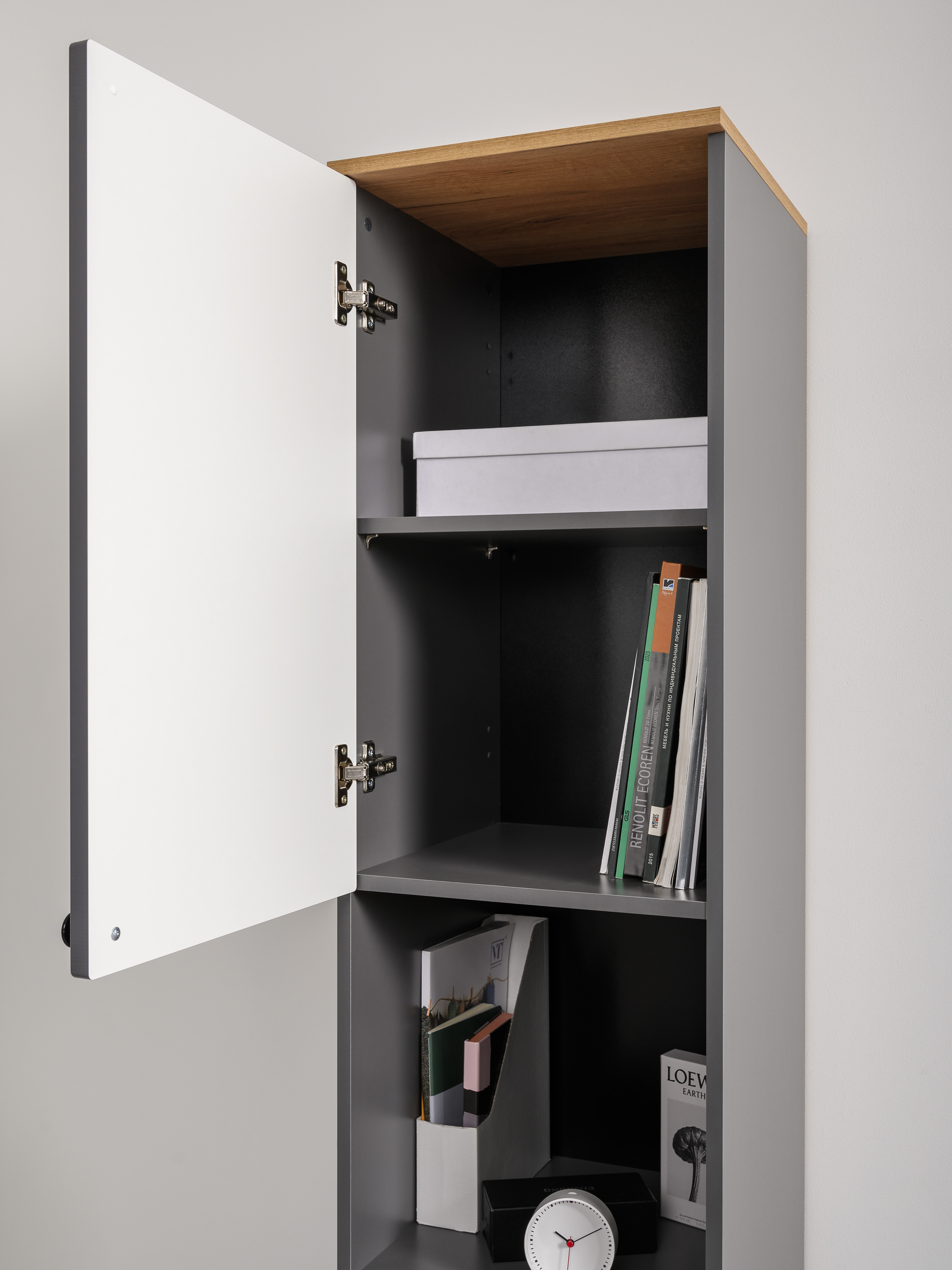Шкаф-пенал Остин 13.225 серый графит, дуб вотан, серый графит ПВХ