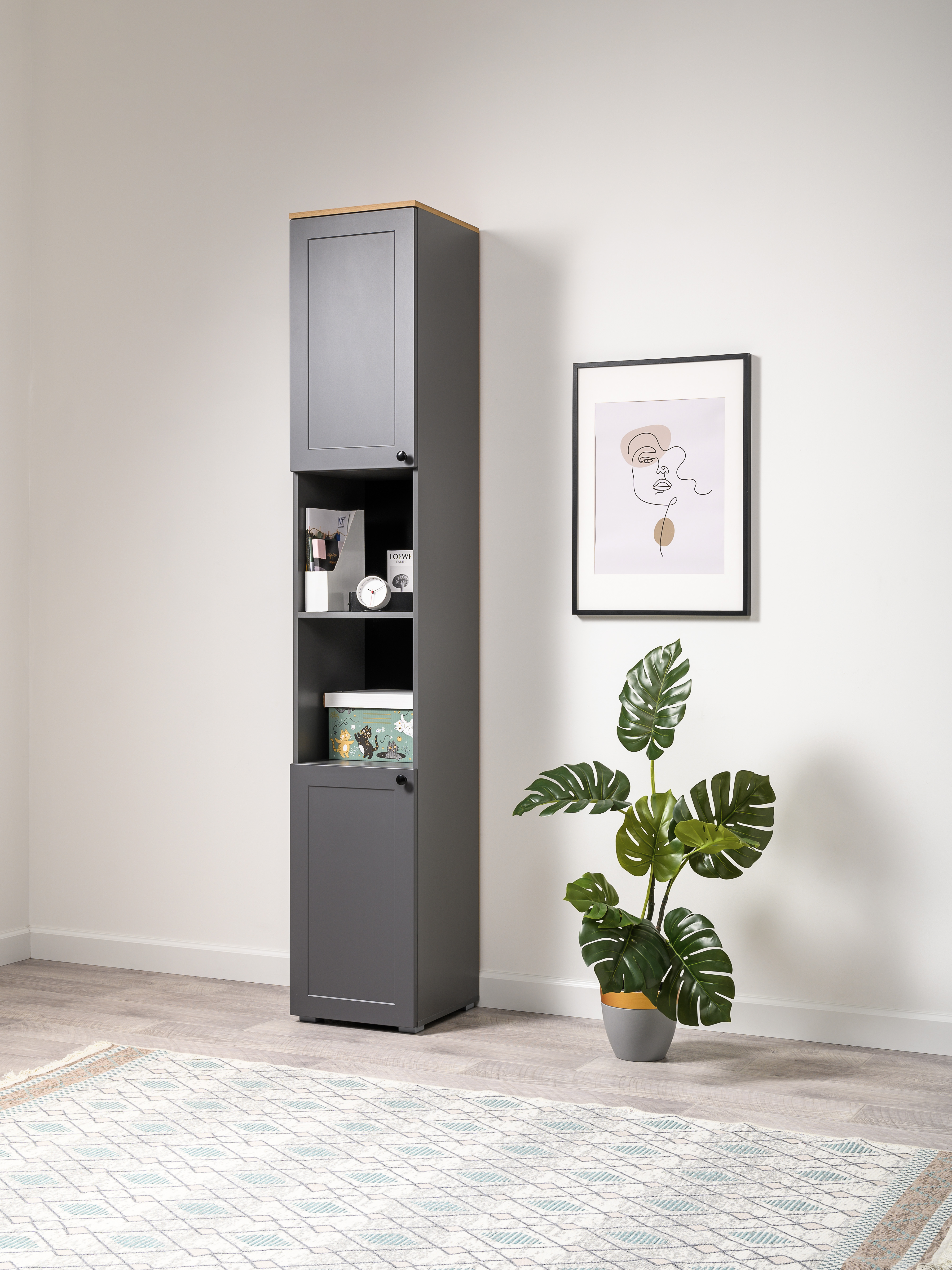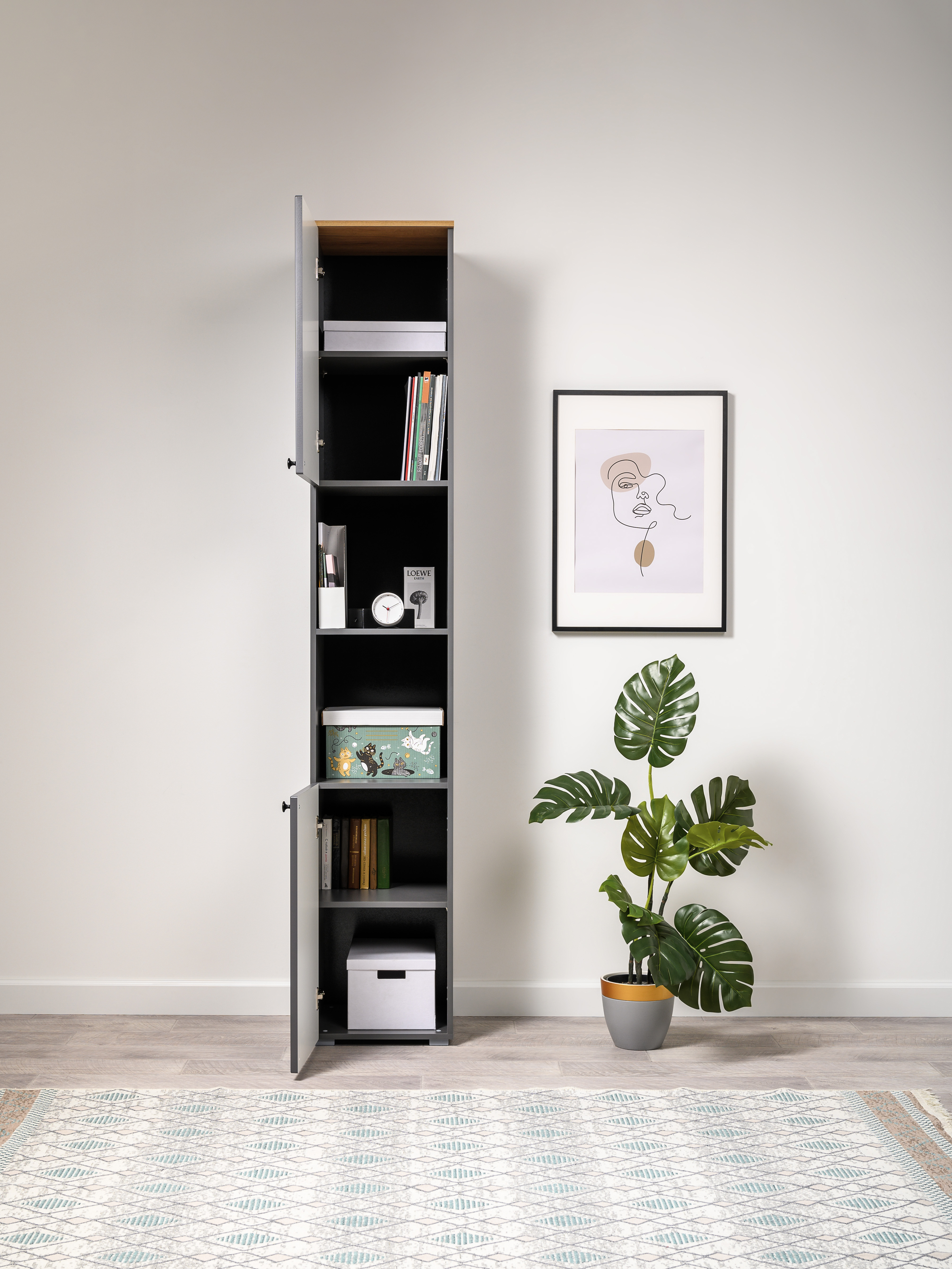 Шкаф-пенал в гостиную Остин 13.227 серый графит 0162 РЕ, дуб золотой CRAFT, графит ZB 856-2 ПВХ