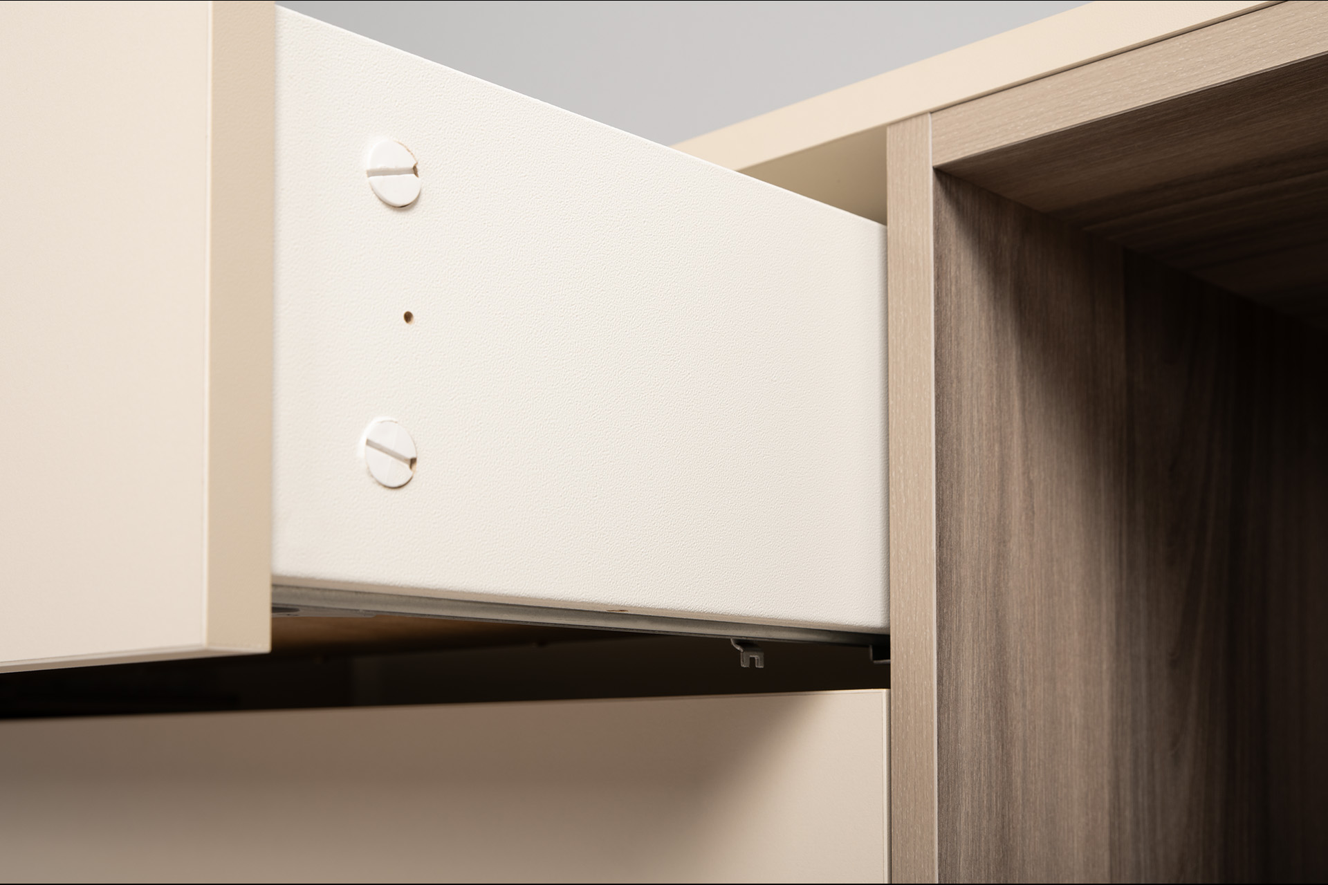 Тумба под ТВ в гостиную Петра 13.281 белый PE шагрень, милк софт ПВХ, бетон чикаго беж ПВХ