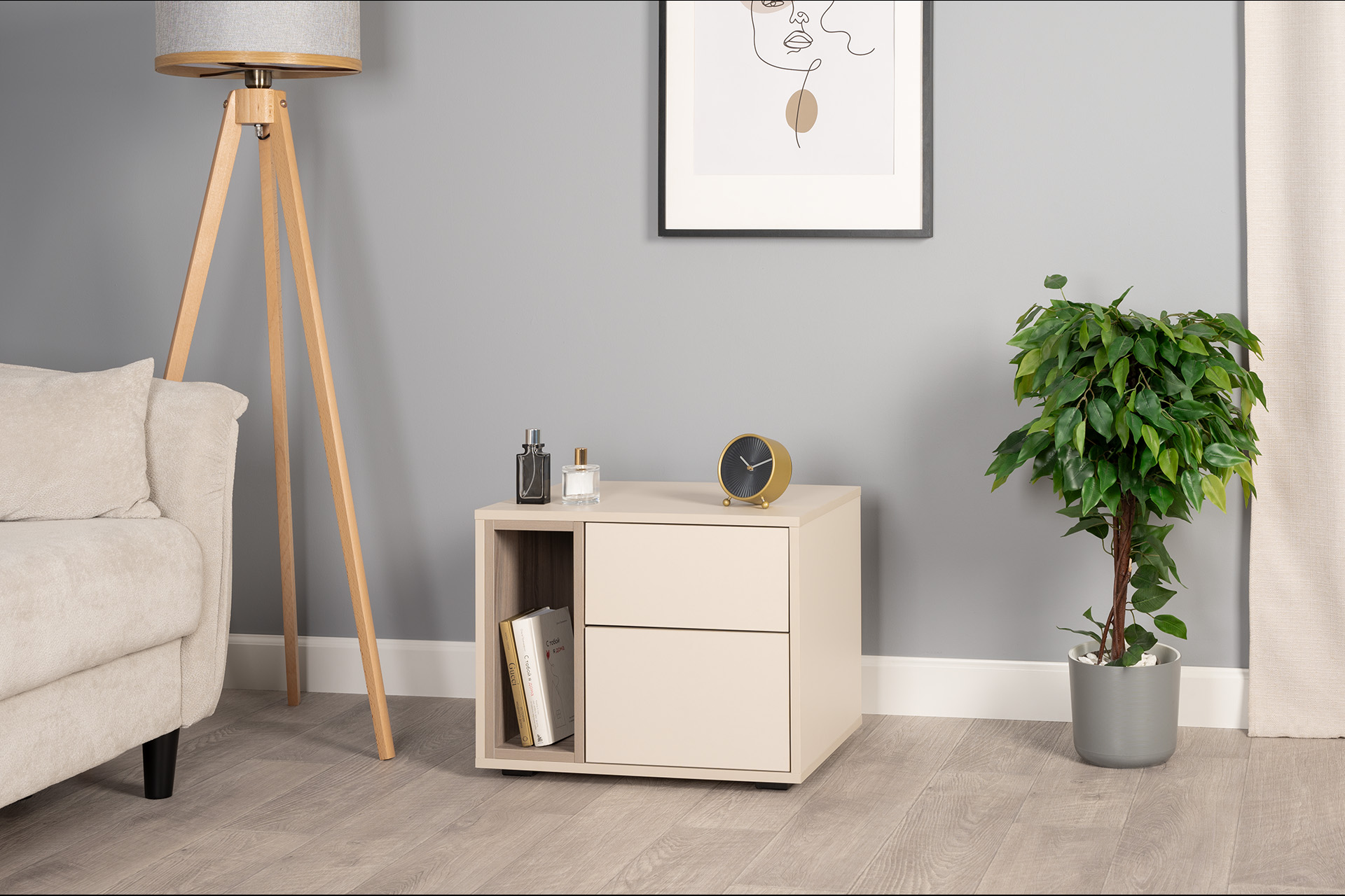 Тумба прикроватная Лакки бук песочный, дуб тортуга ПВХ, белый глянец ПВХ